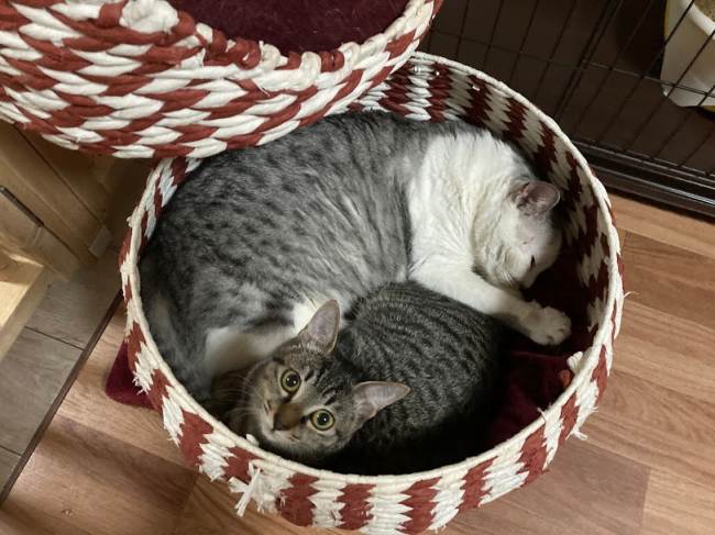 写真は、8月に老猫ルームにやって来たニャコとアカネです。ふたりは親子ではありませんが、子どもと離れ離れになったニャコとお母さんを亡くしたアカネは本当の親子のように仲良しです(*^^*)
